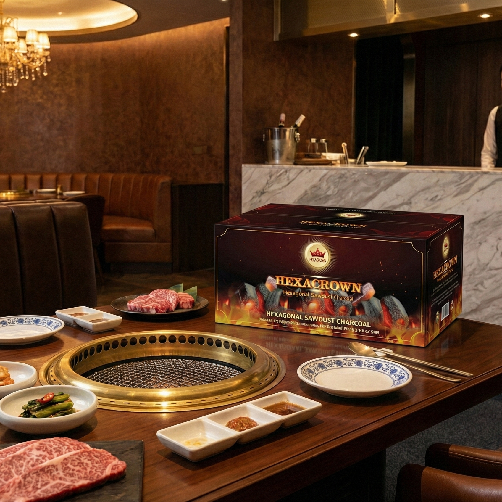 Clean & Aromatic Burn: A refined black charcoal experience—smokeless and spark-free. It leaves very little ash and imparts a subtle, natural wood aroma that enhances the flavor of BBQ dishes.
